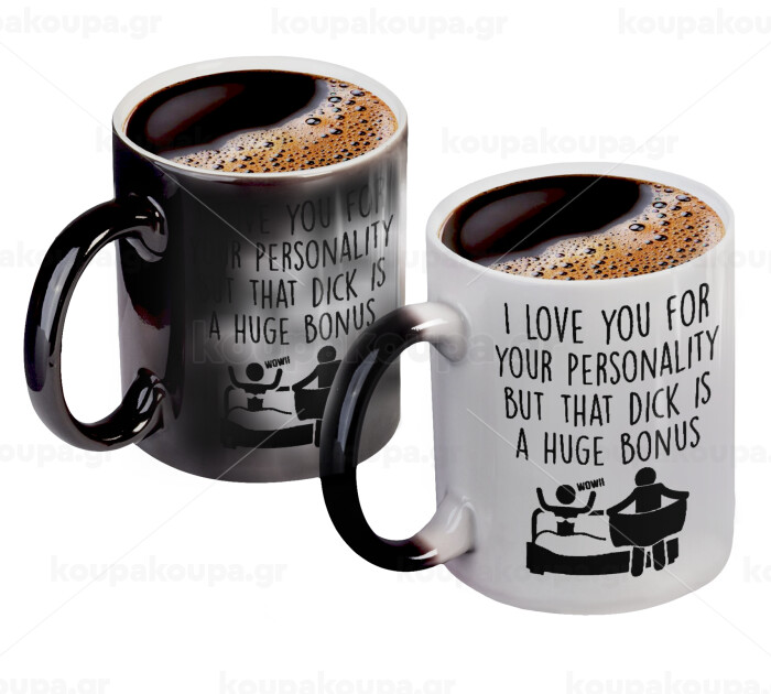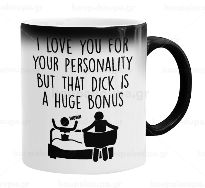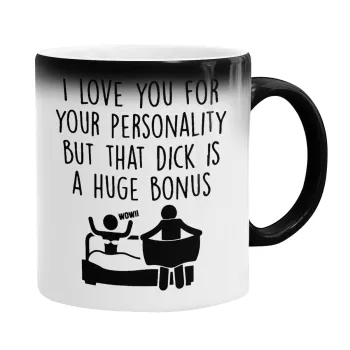 I Love You for Your Personality But that D... Is a Huge Bonus , Color changing magic Mug, ceramic, 330ml when adding hot liquid inside, the black colour desappears (1 pcs)