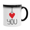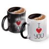 I Love You small dots, Color changing magic Mug, ceramic, 330ml when adding hot liquid inside, the black colour desappears (1 pcs)