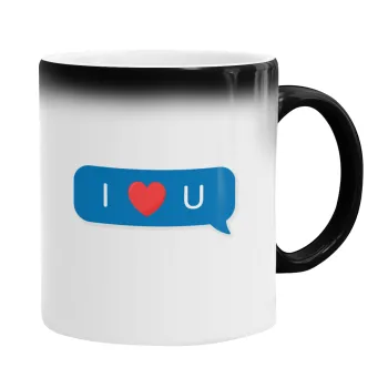 I Love You text message, Color changing magic Mug, ceramic, 330ml when adding hot liquid inside, the black colour desappears (1 pcs)