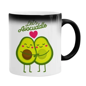 Let's avocuddle, Color changing magic Mug, ceramic, 330ml when adding hot liquid inside, the black colour desappears (1 pcs)