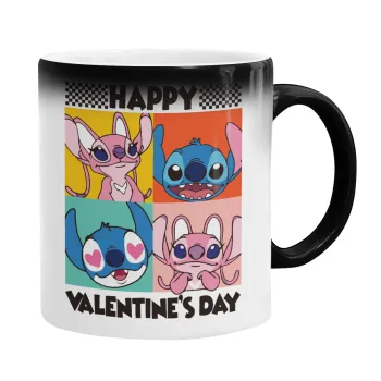 Lilo & Stitch Happy valentines day, Color changing magic Mug, ceramic, 330ml when adding hot liquid inside, the black colour desappears (1 pcs)