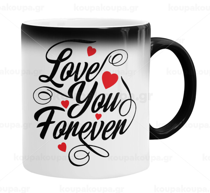 Love you forever, Color changing magic Mug, ceramic, 330ml when adding hot liquid inside, the black colour desappears (1 pcs)