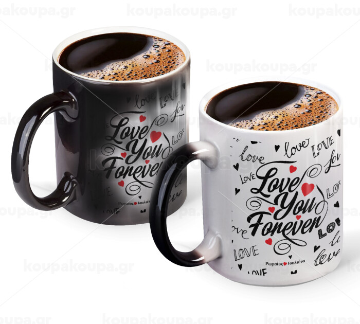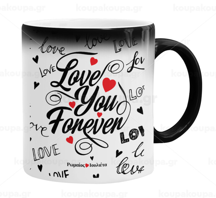 Love You Forever, Color changing magic Mug, ceramic, 330ml when adding hot liquid inside, the black colour desappears (1 pcs)