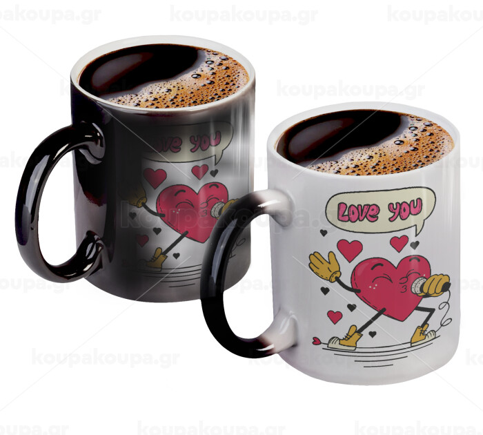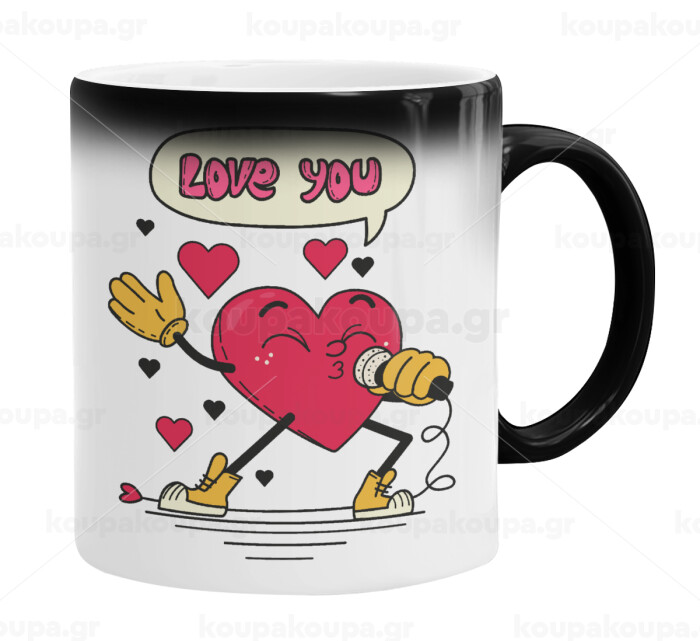 LOVE YOU SINGER!!!, Color changing magic Mug, ceramic, 330ml when adding hot liquid inside, the black colour desappears (1 pcs)