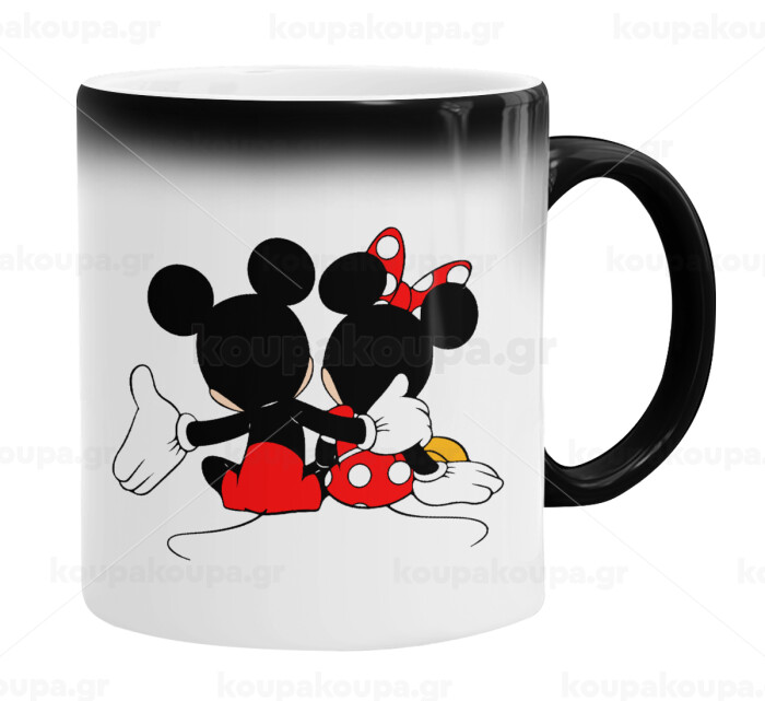 mickey and minnie hags, Color changing magic Mug, ceramic, 330ml when adding hot liquid inside, the black colour desappears (1 pcs)