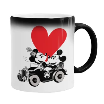 Mickey & Minnie love car, Color changing magic Mug, ceramic, 330ml when adding hot liquid inside, the black colour desappears (1 pcs)