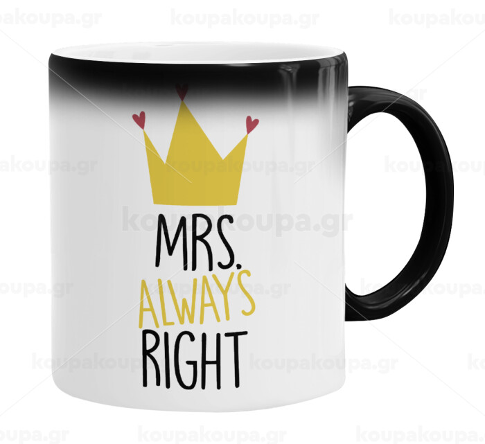 Mrs "Always" right, Color changing magic Mug, ceramic, 330ml when adding hot liquid inside, the black colour desappears (1 pcs)