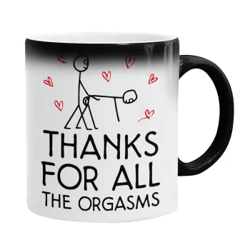 Thanks for all the orgasms, Color changing magic Mug, ceramic, 330ml when adding hot liquid inside, the black colour desappears (1 pcs)