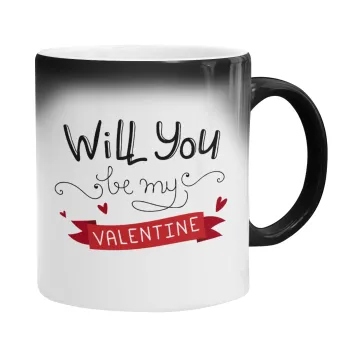 Will you be my Valentine???, Color changing magic Mug, ceramic, 330ml when adding hot liquid inside, the black colour desappears (1 pcs)