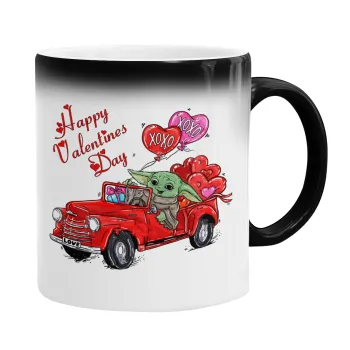 Yoda, happy valentines day (xoxo), Color changing magic Mug, ceramic, 330ml when adding hot liquid inside, the black colour desappears (1 pcs)
