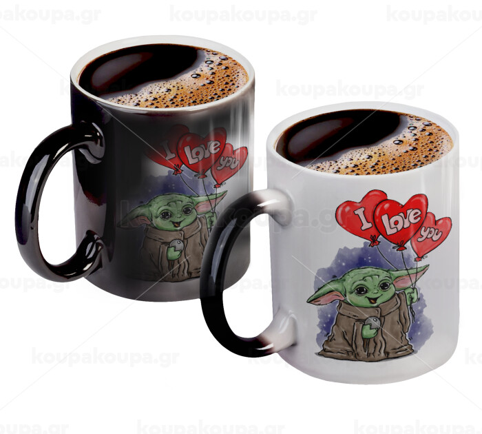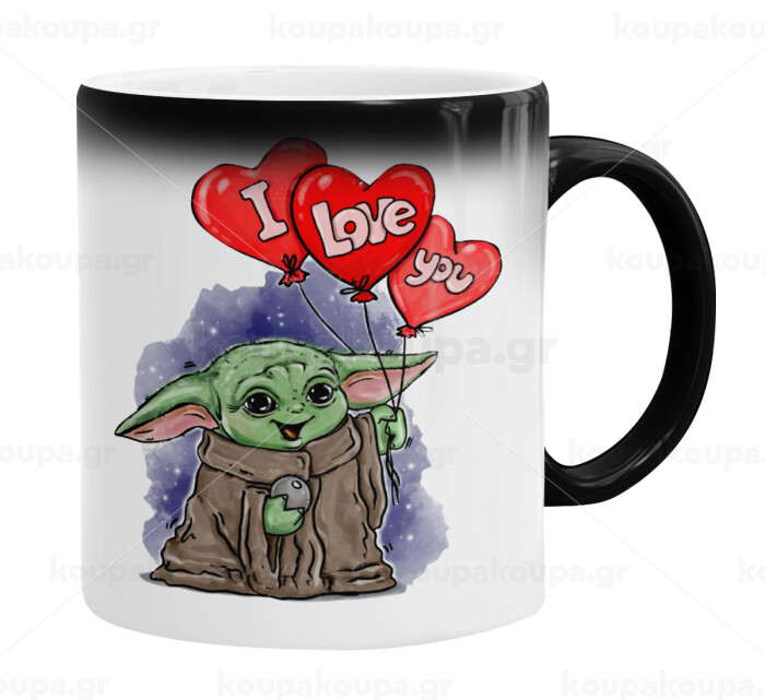 Yoda, i love you, Color changing magic Mug, ceramic, 330ml when adding hot liquid inside, the black colour desappears (1 pcs)