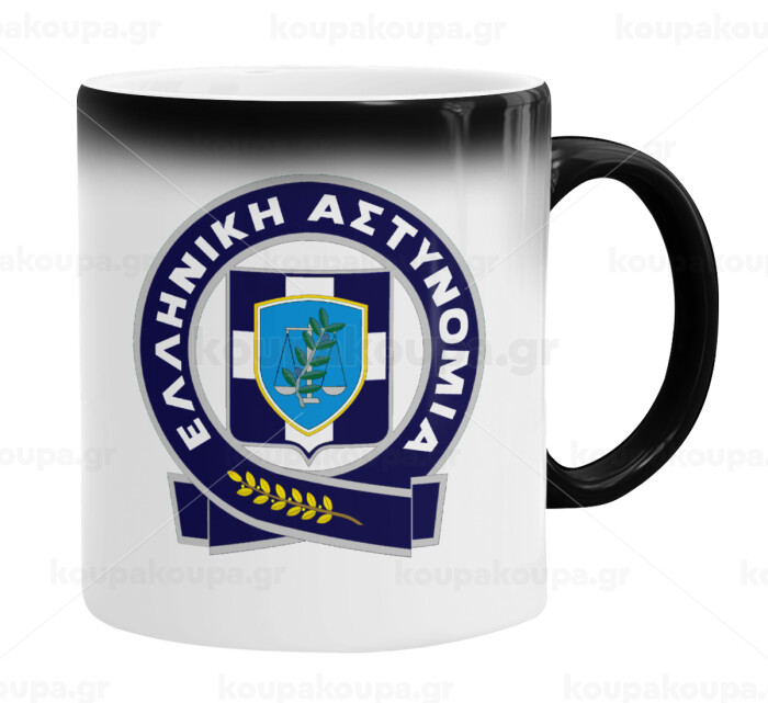 Ελληνική Αστυνομία, Color changing magic Mug, ceramic, 330ml when adding hot liquid inside, the black colour desappears (1 pcs)