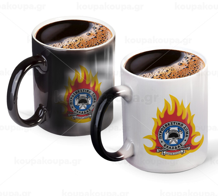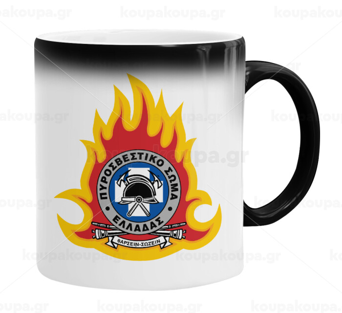 Πυροσβεστικό σώμα Ελλάδος, Color changing magic Mug, ceramic, 330ml when adding hot liquid inside, the black colour desappears (1 pcs)
