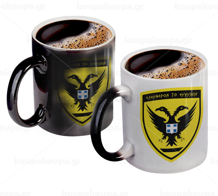 Ελληνικός Στρατός, Color changing magic Mug, ceramic, 330ml when adding hot liquid inside, the black colour desappears (1 pcs)