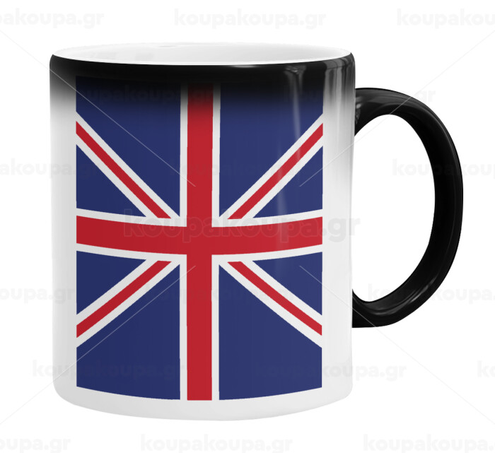 UK Flag, Color changing magic Mug, ceramic, 330ml when adding hot liquid inside, the black colour desappears (1 pcs)