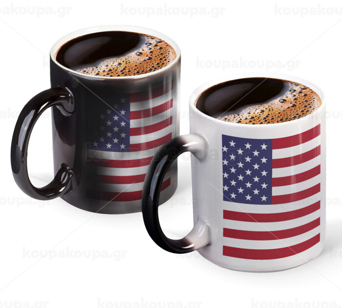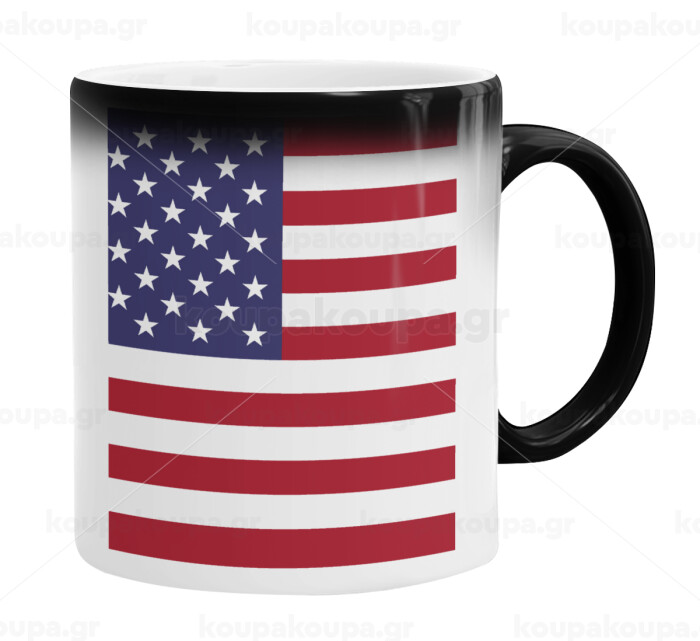 USA Flag, Color changing magic Mug, ceramic, 330ml when adding hot liquid inside, the black colour desappears (1 pcs)