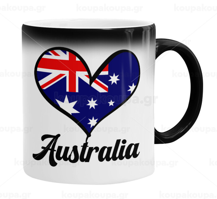 Australia flag, Color changing magic Mug, ceramic, 330ml when adding hot liquid inside, the black colour desappears (1 pcs)