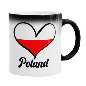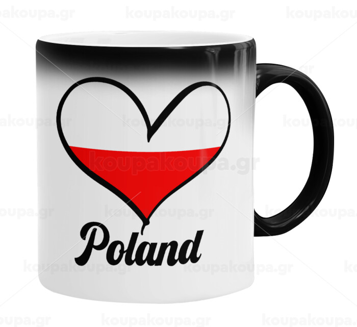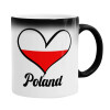 Poland flag, Color changing magic Mug, ceramic, 330ml when adding hot liquid inside, the black colour desappears (1 pcs)