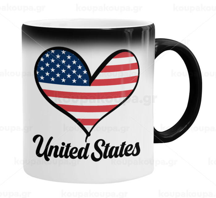 USA flag, Color changing magic Mug, ceramic, 330ml when adding hot liquid inside, the black colour desappears (1 pcs)