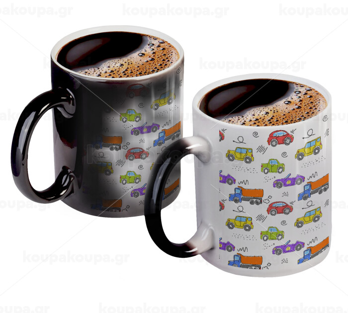 Colorful cars, Color changing magic Mug, ceramic, 330ml when adding hot liquid inside, the black colour desappears (1 pcs)
