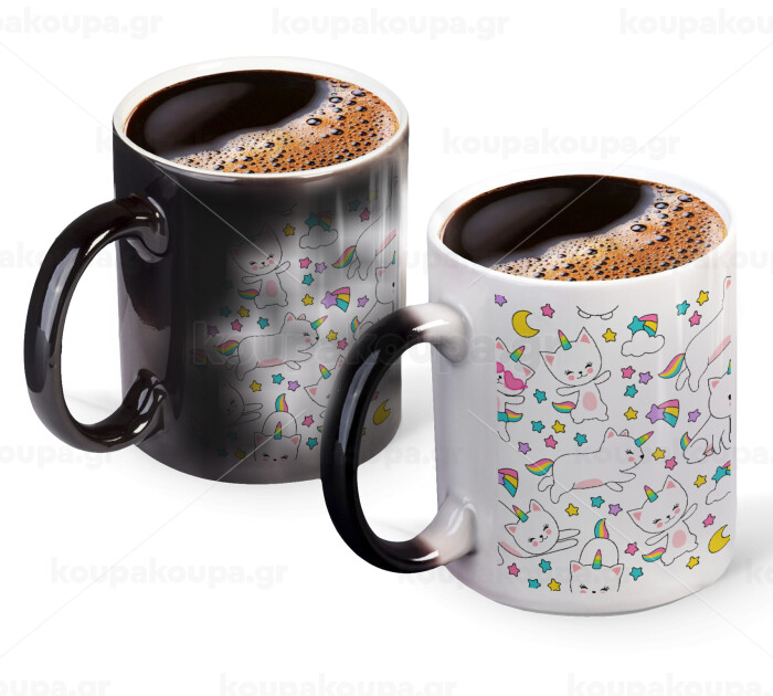 Cats unicorns, Color changing magic Mug, ceramic, 330ml when adding hot liquid inside, the black colour desappears (1 pcs)