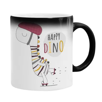 Happy Dino, Color changing magic Mug, ceramic, 330ml when adding hot liquid inside, the black colour desappears (1 pcs)