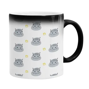 Hippo, Color changing magic Mug, ceramic, 330ml when adding hot liquid inside, the black colour desappears (1 pcs)