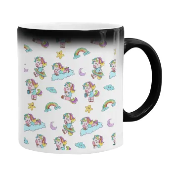 Unicorn pattern, Color changing magic Mug, ceramic, 330ml when adding hot liquid inside, the black colour desappears (1 pcs)