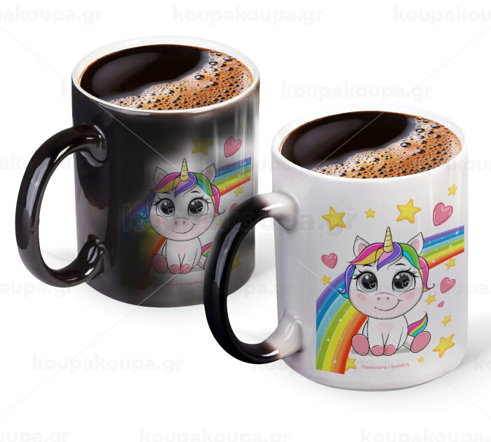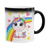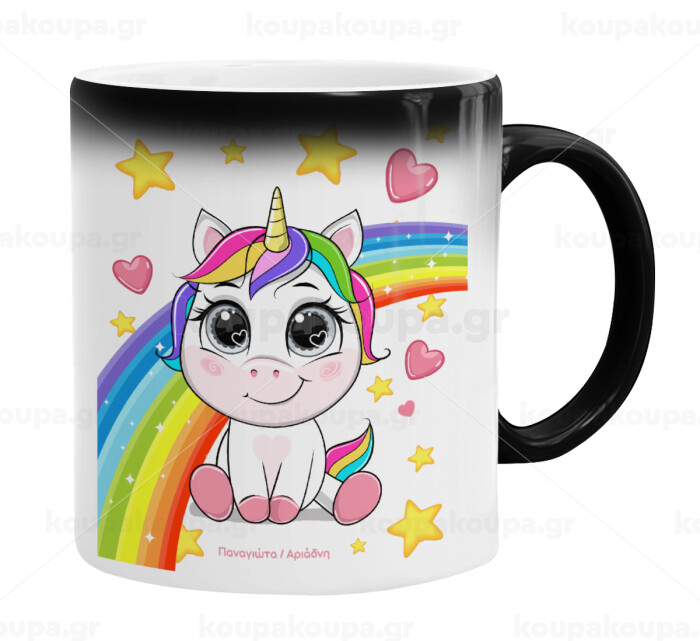 Unicorn baby με όνομα, Color changing magic Mug, ceramic, 330ml when adding hot liquid inside, the black colour desappears (1 pcs)