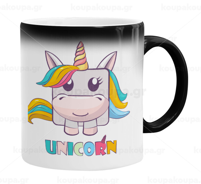 Unicorns cube, Color changing magic Mug, ceramic, 330ml when adding hot liquid inside, the black colour desappears (1 pcs)
