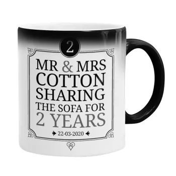Mr & Mrs Sharing the sofa, Color changing magic Mug, ceramic, 330ml when adding hot liquid inside, the black colour desappears (1 pcs)