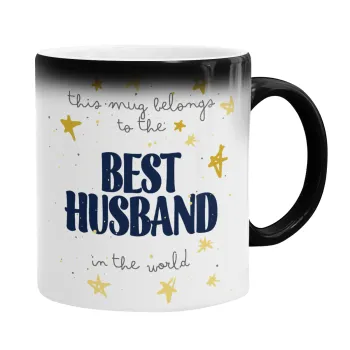 This mug belongs to the BEST HUSBAND in the world!, Color changing magic Mug, ceramic, 330ml when adding hot liquid inside, the black colour desappears (1 pcs)