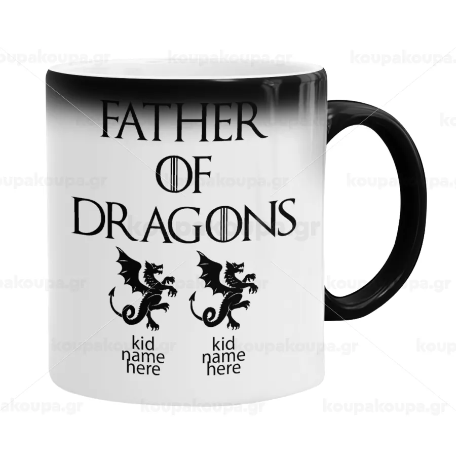 GOT, Father of Dragons (με ονόματα παιδικά), Color changing magic Mug, ceramic, 330ml when adding hot liquid inside, the black colour desappears (1 pcs)