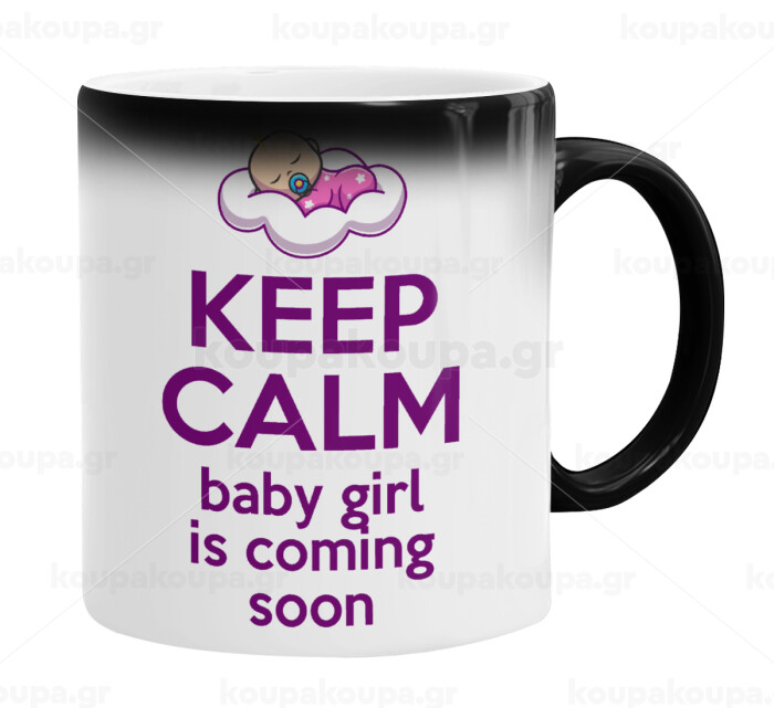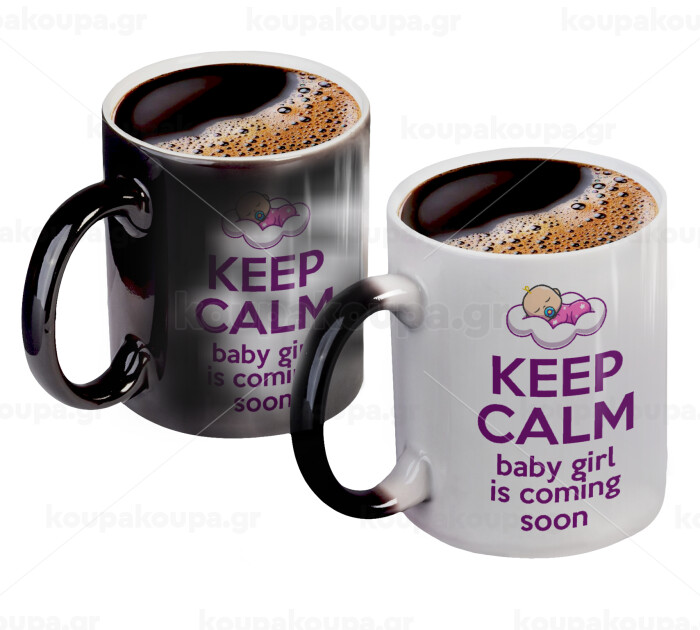 KEEP CALM baby girl is coming soon!!!, Color changing magic Mug, ceramic, 330ml when adding hot liquid inside, the black colour desappears (1 pcs)