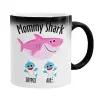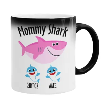 Mommy Shark (με ονόματα παιδικά), Color changing magic Mug, ceramic, 330ml when adding hot liquid inside, the black colour desappears (1 pcs)