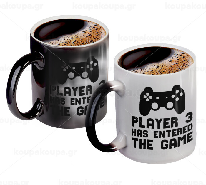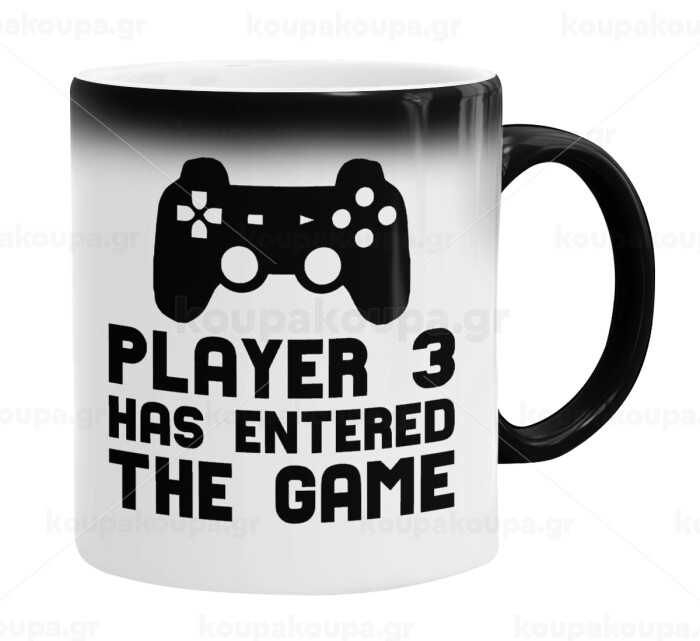 Player 3 has entered the Game, Color changing magic Mug, ceramic, 330ml when adding hot liquid inside, the black colour desappears (1 pcs)