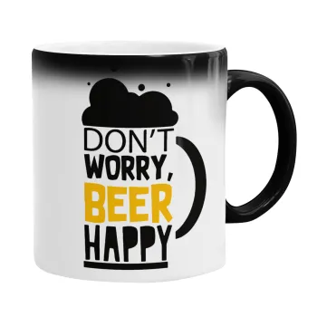 Don't worry BEER Happy, Color changing magic Mug, ceramic, 330ml when adding hot liquid inside, the black colour desappears (1 pcs)