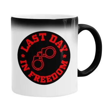 Last day in freedom, Color changing magic Mug, ceramic, 330ml when adding hot liquid inside, the black colour desappears (1 pcs)