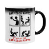 What happens at the bachelor party, stays at the bachelor party!, Color changing magic Mug, ceramic, 330ml when adding hot liquid inside, the black colour desappears (1 pcs)