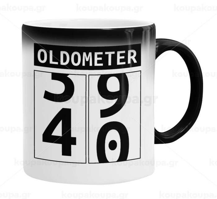 OLDOMETER, Color changing magic Mug, ceramic, 330ml when adding hot liquid inside, the black colour desappears (1 pcs)