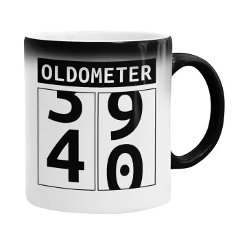 OLDOMETER, Color changing magic Mug, ceramic, 330ml when adding hot liquid inside, the black colour desappears (1 pcs)