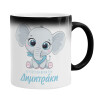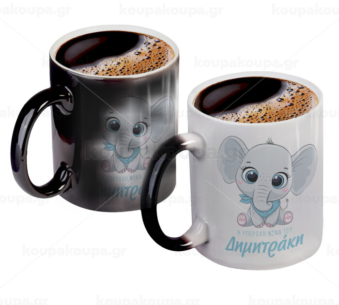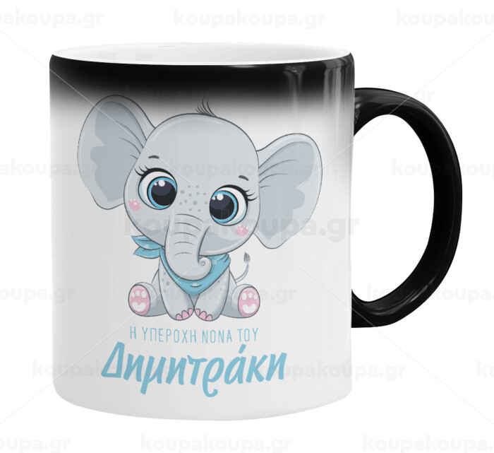 Η νονά μου, ελεφαντάκι γαλάζιο, Color changing magic Mug, ceramic, 330ml when adding hot liquid inside, the black colour desappears (1 pcs)