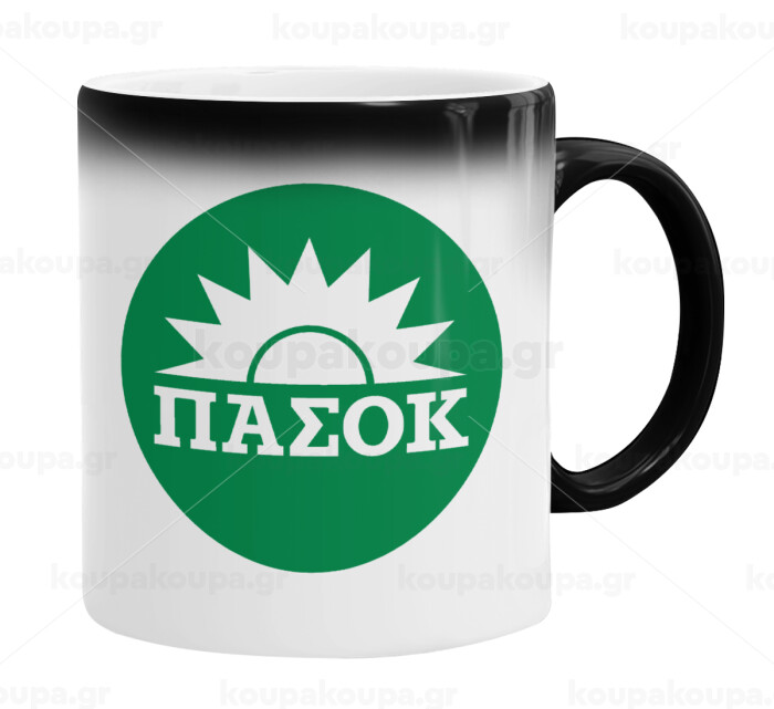 PASOK Green/White, Color changing magic Mug, ceramic, 330ml when adding hot liquid inside, the black colour desappears (1 pcs)
