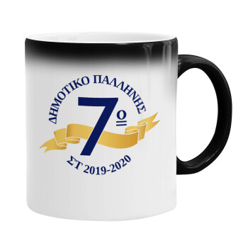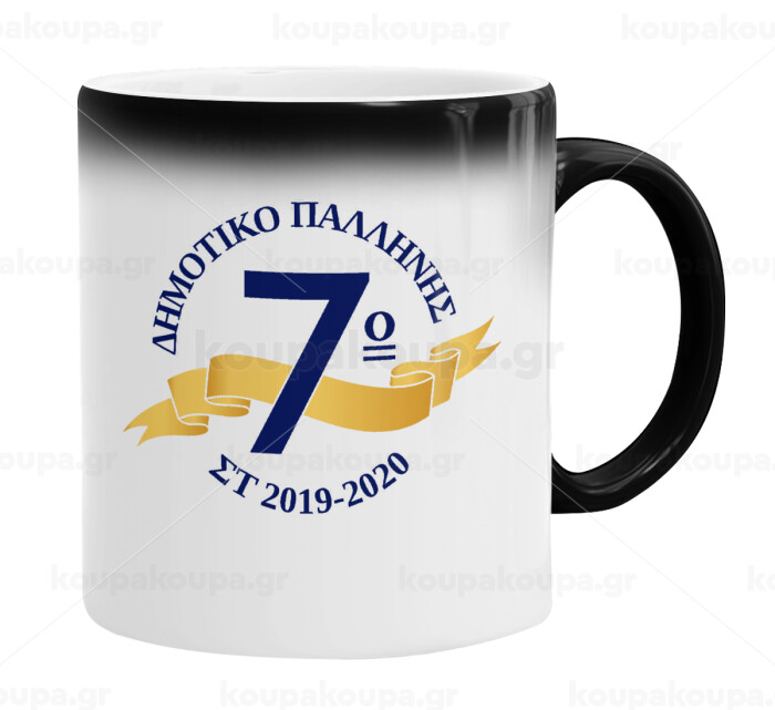 Σχολική μπλε με κορδέλα, Color changing magic Mug, ceramic, 330ml when adding hot liquid inside, the black colour desappears (1 pcs)