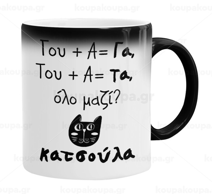 Κατσούλα, Color changing magic Mug, ceramic, 330ml when adding hot liquid inside, the black colour desappears (1 pcs)