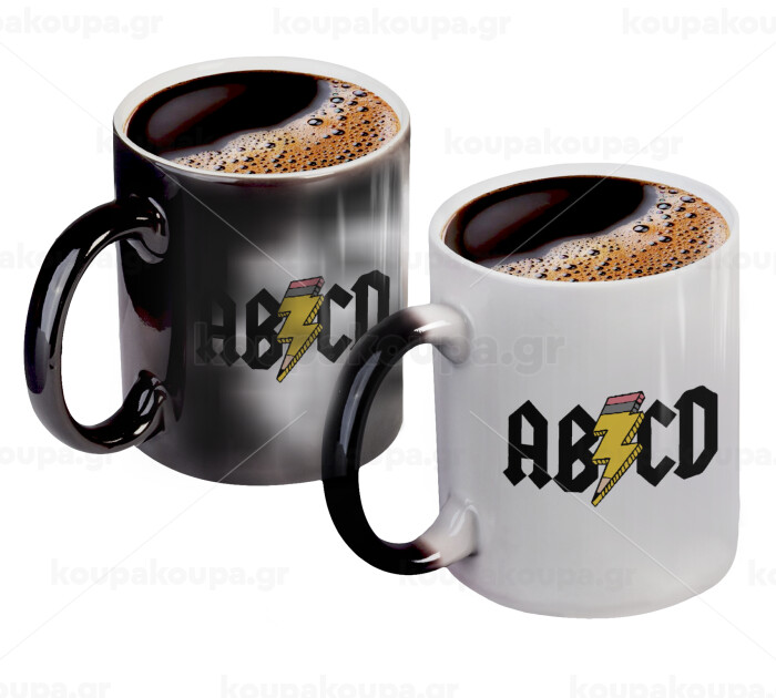 ABCD, Color changing magic Mug, ceramic, 330ml when adding hot liquid inside, the black colour desappears (1 pcs)