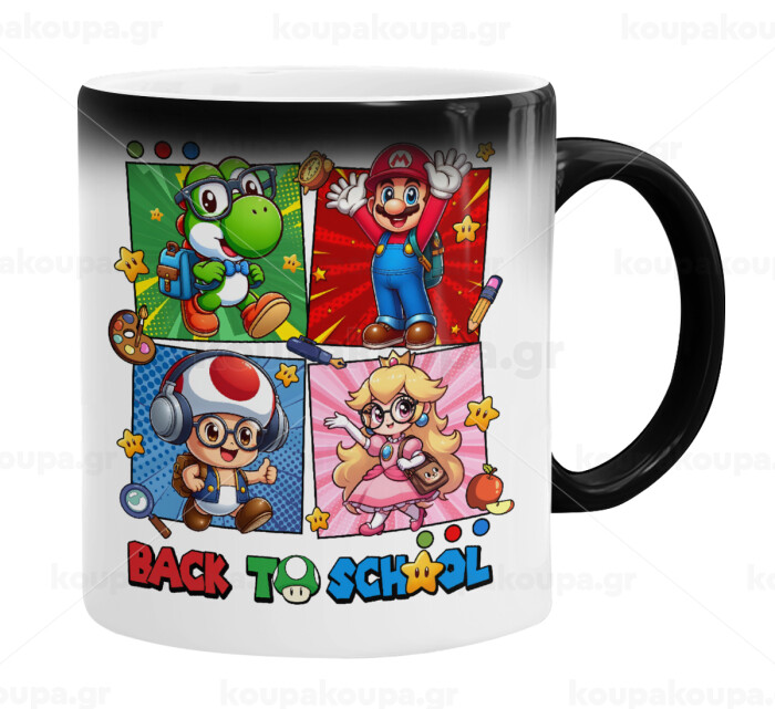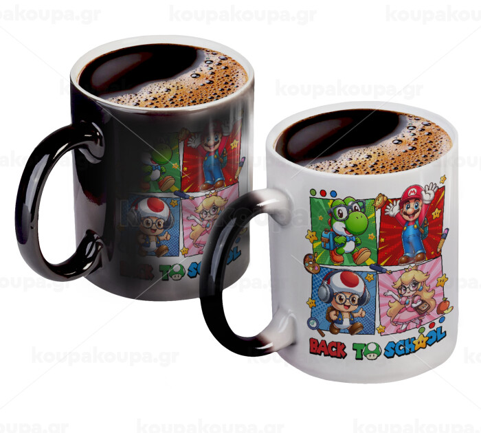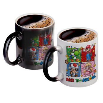 Back to the School Mario & Friends, Color changing magic Mug, ceramic, 330ml when adding hot liquid inside, the black colour desappears (1 pcs)