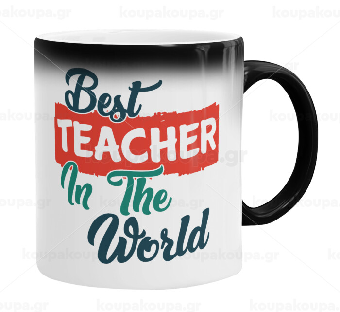 Best teacher in the World!, Color changing magic Mug, ceramic, 330ml when adding hot liquid inside, the black colour desappears (1 pcs)