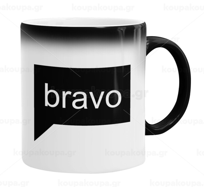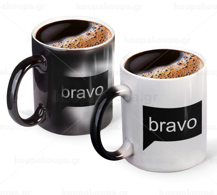 Bravo, Color changing magic Mug, ceramic, 330ml when adding hot liquid inside, the black colour desappears (1 pcs)
