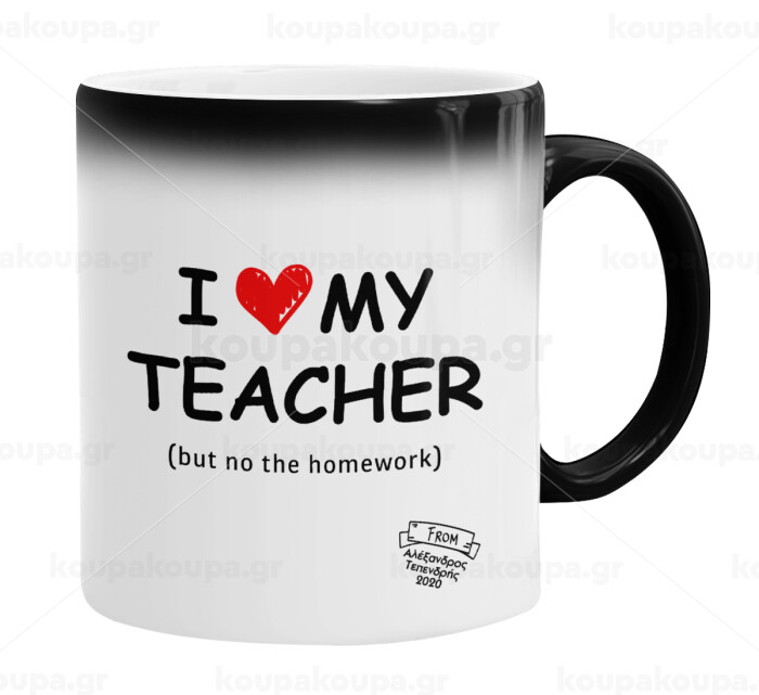 i love my teacher but no the homework, Color changing magic Mug, ceramic, 330ml when adding hot liquid inside, the black colour desappears (1 pcs)